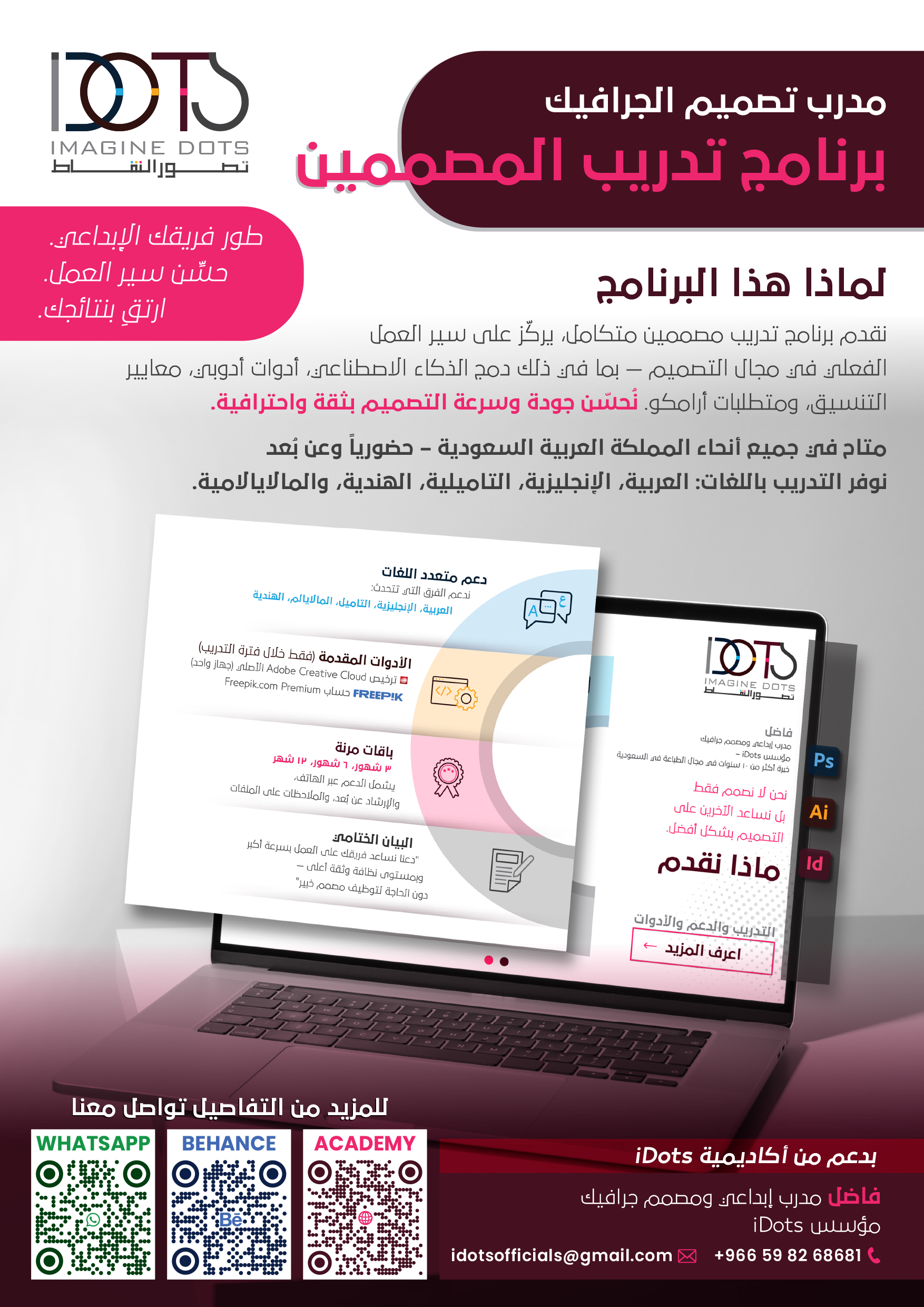 WhatsAppPortfolioTrain your designer like a pro. Get practical sessions, AI workflows, Adobe + Freepik access, and Aramco-level design skills — in one program.